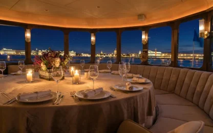 Теплоход удобный: наверху открытая палуба для панорам, внизу тёплый закрытый зал с большими окнами — можно нормально переждать ветер и всё равно смотреть на разводку. В целом — чёткая, хорошо организованная прогулка: увидел главное, не замёрз, не устал и получил тот самый “питерский” опыт, который обычно откладываешь на потом.